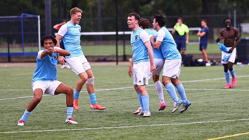 This proved to be the case, too, with both sides threatening from the off. The visitors, who had already secured a 2-2 draw at home to the Old Wykehamists 2s on their opening weekend of the season, started brightly and forced several corners, all of which were cleared without too much trouble. It took the hosts a while to get going, the Blues’ biggest threat in the opening stages seemingly arriving via the lengthy goal kicks from the boot of Tom Mitchell. The Canfordians centre-backs looked uneasy under the high ball, Everett and Adam Graham sniffing for potential opportunities.