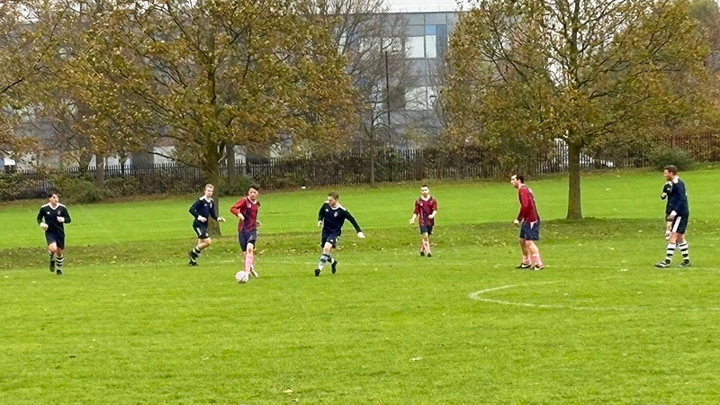 The visitors gradually began to wake from their slumber and with a quarter of the match played had just about begun to compete on level terms when the game swung back heavily in Harrow’s favour. A ball forwards landed at the feet of Kellock and, as he turned to carry forwards into the box, a Carthusian defender launched an ugly, high challenge which collided directly with the forward’s knee. Kellock was left in a crumpled heap on the sodden turf, the Carthusian was left to contemplate leaving his teammates to play the remainder of the game with ten men after referee Gage Deitsch produced a warranted red card.