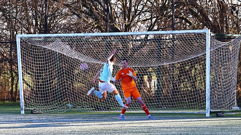 The hosts made the faster start on a beautiful but cold winter morning on the Hill and they received a late Christmas present courtesy of one of the Habs’ centre-backs, who almost inexplicably turned a cross from the left wing from Doug Pratt into his own net with just eight minutes on the clock, no Harrovian attacker in the vicinity. But the lead lasted just five minutes, some slack marking following a Habs throw-in on their left saw the ball crossed to the far post and the right winger judged his finish superbly, leaping to cushion the ball with the inside of his instep back across goal and beyond the reach of keeper Rory Craig.